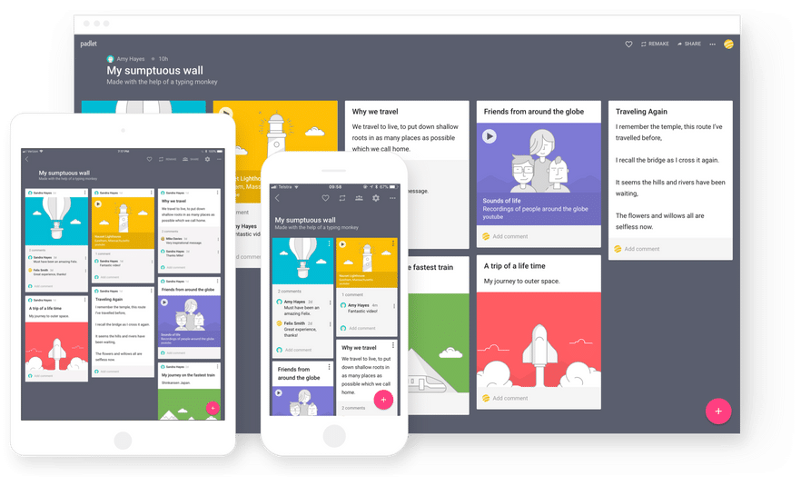 Padlet – רבים מאיתנו מכירים את הפדלט. הפדלט הוא קיר שיתופי בו המשתתפים יכולים להעלות פוסטים מסוגים שונים (טקסט, תמונות, וידאו) שלבסוף מייצרים תוצר מרשים שאוסף את כלל המידע במקום אחד. יכול לשמש לעבודה סדנאית ו/או לריכוז של חומרי מידע וקישורים עבור הצוות/הלקוח.